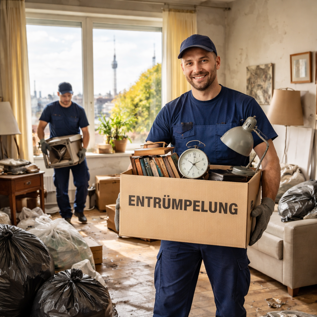 Noch am selben Tag oder spätestens am Folgetag erhalten Sie ein schriftliches Angebot mit Festpreis. Darin enthalten: Anfahrt durch ganz Berlin, alle Etagen, Demontage, Entsorgung, Endreinigung. Wir besprechen mögliche Wertanrechnung (Möbel, Antiquitäten, Metallschrott) und ziehen diese transparent ab. Keine versteckten Kosten, keine Nachverhandlung.
